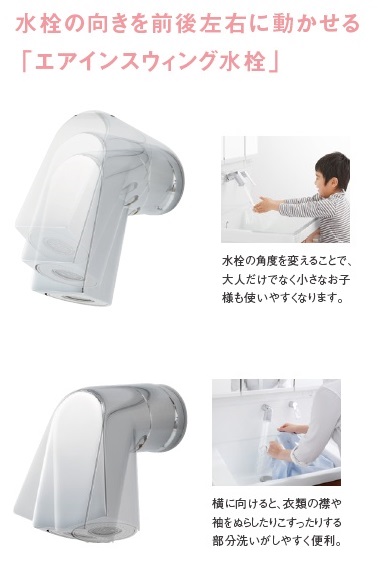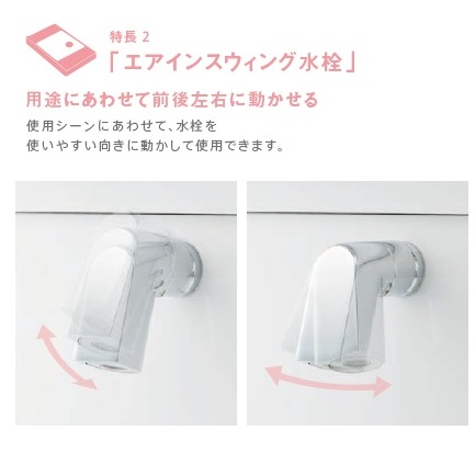 水栓の向きを前後左右に動かせ角度調整が可能になります♪