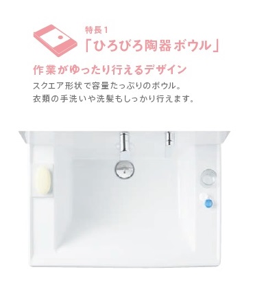 ピアラの特徴は、なんといっても使いやすい洗面ボウル。
