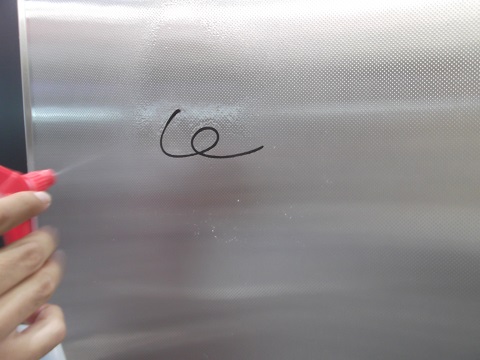 まず、美コートワークトップの上に、油性マジックで落書きしちゃいますよ〜