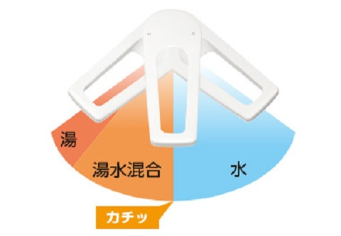 よく使われるレバー中央位置で水を優先して吐水し、水と湯の境にクリック感を設けることで、