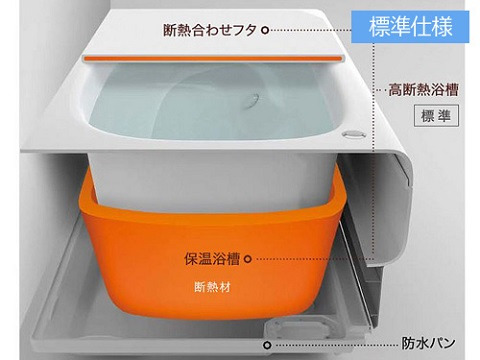保温浴槽+断熱合わせフタで、約4時間後の湯温低下は