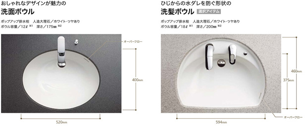 こだわりやライフスタイルに合わせてタイプとカラーが選べる人造大理石のボウル&カウンターです。
